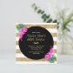 Comemore seu aniversário de 60 anos em estilo com esta design moderna em preto, falsos sulcos de ouro e listras brancas com orquídeas cor-de-rosa fuchsia. Adicione sua foto à parte traseira do convite usando a função de edição. Você também pode alterar a fonte, o tamanho da fonte e as cores da fonte.