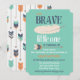 Nosso Corajoso Pequeno, Setas Tribais Primeira Festa de aniversário Verde Azul e Convite Laranja Boho.