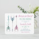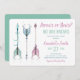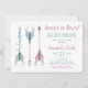 Convite de chá de fraldas neutro em termos de gênero perfeito para chás de fraldas em que o sexo do bebê é desconhecido. Apresenta setas com arcos em rosa, azul e verde com texto "Setas ou Arcos que ninguém conhece".
