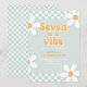 Seven is a Vibe Convite de aniversário de 7 anos inspirado em Groovy Girl retrô com fontes dos anos 70 e margaridas e padrão xadrez.