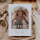 Um simples convite de Aniversário para 7, com sua própria foto em forma de arco e as palavras 'sete' no topo.