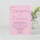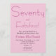 Convite de aniversário de 70 anos moderno, rosa corado, rosa quente e preto que você pode personalizar e enviar para a celebração do seu aniversário de setenta anos. As palavras "Setenta e Maravilhoso" são definidas usando tipografia de fonte de escrita popular. As cores do texto podem ser alteradas usando o menu de edição.