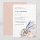 O chá de panela chic costeiro apresenta uma ilustração pastel cor-de-rosa e marfim, com detalhes de seu chá de panela em azul-marinho e cinza suave clássicos. Perfeito para chás de panela de praia, verão ou tema náutico, esses convites estilo costeiro invertem a casca de luz sólida rosa.