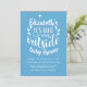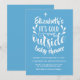 Apresentando o nome e a citação da mãe em um roteiro legal e seus detalhes de convite em texto clássico sobre um fundo azul bebê. Projetado por Thisnotme©