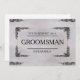 Este belo momento de 5" x 7" para o seu serviço é solicitado como o melhor cartão de convite para o Padrinho de casamento. Isto é melhor para o noivo. Se você está perguntando a alguém para ser sua padrinho de casamento para seu futuro casamento, então por que não escolher esses cartões de padrinho de casamento. Este cartão de convite personalizado fará com que seu amigo, irmão, primo, sobrinho, filho ou qualquer outro que você escolher sinta isso especial. Este convite é facilmente personalizado clicando no botão Personalizar sob a imagem onde você poderá alterar o texto, a fonte e o tamanho. Você pode convidar seus melhores amigos em estilo com estes convites clássicos. É adequado para o Melhor Homem ou para Padrinhos de casamento. Envie-lhes este cartão de padrinhos de casamento.