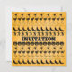 Os ícones pretos do Halloween criam um padrão de feriado icônico com silhuetas de bruxas, fantasmas, gatos pretos, luas em crescente e lanternas em um fundo laranja texturizado. Há modelos de texto para facilitar a personalização das informações da festa do Dia das Bruxas, incluindo endereço, data, hora e RSVP. Há outra modelo para o texto, "Convite", no verso.