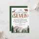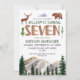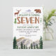 Watercolor wooden seven- rustic forest boys 7th birthday invitation.
