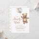 Sexo Bprecoce de Esperança Neutra do Sexo O convite para Chá de fraldas do Urso de Teddy apresenta uma ilustração adorável de aquarela de um ursinho de peluche segurando balões rosa e azuis.
