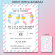 Este convite revelador de gênero é a forma perfeita de celebrar a sua chegada e começar a pensar no essencial do seu bebê. Ele apresenta uma design divertida com duas fraldas, fazendo a pergunta "Azul ou Rosa? O que você acha?" As listras de Pastel complementam o tema da fralda fofa. Os convidados são encorajados a "trazer um pacote de fraldas em qualquer tamanho para uma oportunidade de ganhar um prêmio especial". Fazer perfeito para uma festa reveladora de gênero com uma rifa fralda. Edite as modelos de texto para seu próprio convite personalizado. Disponível como cartões de convite impressos ou como um download instantâneo para enviar em seu telefone.