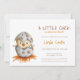 Simples e belo convite de chá de fraldas neutro em relação ao gênero com um adorável pequeno pintinho a eclodir a partir do seu ovo. Ilustrada e projetada por Patricia Alvarez.