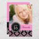 Garota, divertida, bonita, mas sofisticada e elegante, este Convite de festas personalizado de Glitter Damask 16, preto e rosa, com sua foto é a forma perfeita de convidar seus convidados para a doce festa de 16 anos da sua filha.Nota: brilho é um efeito fotográfico IMPRESSO. Design de Elke Clarke©.