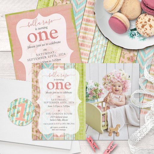 Um tema doce para o chique de festa de casinha. Um belo pincel rosa, azul pastel e verde limão criam uma paleta lúdica. Rosas, diafragmas, listras e padrões sutis de papel de parede úmido com muita textura visual. Aplicado sobre um fundo de madeira rústico, este design é adorável e versátil! ・ Coordene-o! Navegue na Coleção de Bebês de Padrão de Rosa Shabby para todos os impressões e produtos complementares para corresponder a este design.