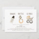 Este convite de chá de fraldas "shake, rattle and roll", neutro em termos de sexo, apresenta um fundo branco com uma garrafa de bebê, um chocalho de zebra e um carrinho de bebê. O verso apresenta um fundo branco com padrões de brinquedos para bebês. Personalize-o para as suas necessidades. Você pode encontrar produtos correspondentes na minha loja.