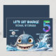 The bold heading “Let’s Get Sharky” sets the tone for a lively and memorable party, while the customizable text templates in white and blue make it easy to add your event details.