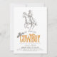 This retro and chic "she found her cowboy" bridal shower invitation features a cowboy on a horse and cowboy hat on an orange background. The reverse side features a pale orange background with cactus patterns. Personalize for your needs. You can find matching products at my store.
