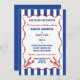 Throw the perfect nautical bridal shower with these invitations. The fun "She found her lobster" headline can be replaced with your own custom text, and all of the text on these invites is ready for your personalized text. These invitations have a red white and blue color scheme with blue and white stripes, a red scalloped frame and my hand drawn realistic style lobster invitations in red.