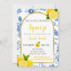 She Found Her Main Squeeze bridal shower invitation features blue flowers, yellow lemons, and black and yellow text.