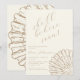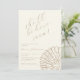 The design is clean and adorned with a beautiful illustration of a clam shell hiding a pearl, giving a subtle maritime touch to a neutral invitation. It’s perfect for an elegant baby girl celebration, designed in a soft, natural champagne tone with warm sand-beige lettering.