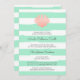 Convite de Chá de fraldas em coral e menta, com listras brancas e casca de couro cabeludo.