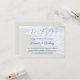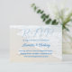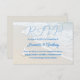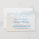 Cartões de cervejas RSVP de casamento em praia. Uma design de resposta de casamento moderna com texto azul sobre uma imagem de praia oceânica. Um solteiro grande concha de geleia foi lavada em terra. O texto "RSVP" está em um script grande, com três outras linhas a serem personalizadas. Inclua um site ou local on-line para os convidados responderem e economizarem tempo e dinheiro. O cartão também pode ser encomendado impresso, à sua escolha, em papel, e incluído em convites para casamento como cartões de cerimônia.