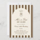 Birthday invitation featuring a hand-drawn coffee martini glass and coffee beans paired with elegant script and serif fonts in which your personalized information is written. The background is brown stripes on a light background. Check out our store for more items from this collection.