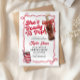 This editable soda pop baby shower invitation features a charming retro theme with a hand-drawn red coquette bow, making it the perfect "She's Ready to Pop" announcement for your upcoming celebration.