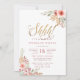 Prepare-se para uma festa de aniversário surpresa com este design lindo. Este convite apresenta buquetes de rosa-d'água nos cantos superior direito e inferior esquerdo, um elegante script de estilo de letra de ouro brilhante para o "Shhh!" com uma bolinhas rosa e um padrão floral no verso. Adicione seus próprios detalhes clicando no botão "personalizar este modelo" e digitando nas caixas de texto e lembre-se, fique quieto!