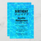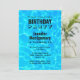 Convite de aniversário com fotografia de água azul clara de piscina, com reflexões brilhantes.
