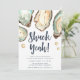 Planejar uma festa de ostras ou frutos do mar? Este convite de festas chic costeiro apresenta exemplos de ostra aqua e ostra aqua-aquarela, com detalhes de eventos em azul-marinho clássico. "Shuck Sim!" aparece na letra de um script esboçado à mão. Perfeito para as festas de praia, verão, casas náuticas e orelhas de ostras para qualquer ocasião.
