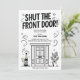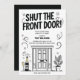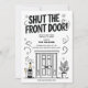 Celebrate your big move in style with this hilarious black and white housewarming invitation! Featuring bold hand-lettered typography that shouts "Shut the Front Door!", this printable invite is the perfect way to share your exciting new chapter with friends and family. The minimalist front-door illustration, bubbly champagne, and fun confetti accents give it a modern, playful feel—ideal for housewarming parties with personality.