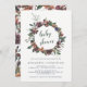 Este design de convite para chás de fraldas quentes e na moda apresenta uma coroa de aquarela floral em tons de verde profundo, arrojado, roxo e laranja queimado.