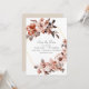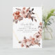Este belo arranjo floral boho terra-cotta rodeado por moldura de ouro é uma maneira elegante de anunciar o seu casamento de outono. Este convite é facilmente editável para que você possa adicionar seu toque pessoal.