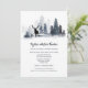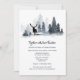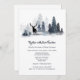Um na moda e elegante design de um céu escuro ardente azul, belos pinheiros de aquarela misturados com brancos de neve. Um veado solitário está parado numa clareira e as suas pop de silhueta pretas contra o fundo branco. Se você vai se casar no inverno, ter uma terra maravilhosa de inverno, uma floresta rústica ou um casamento temático de floresta então esta ilustração é perfeita para suas necessidades.