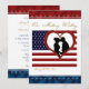 O convite para casamento militar da bandeira patriótica americana, com coração e beijando noiva e noiva da silhueta! As cores principais são branco vermelho, azul e ouro. Este modelo de convite está pronto para você personalizar seus detalhes do dia de casamento nas áreas de modelo. Se você quiser alterar a fonte ou as cores das fontes, posicionar o texto ou reorganizar qualquer coisa simplesmente clique em 'personalizar' e todas essas opções estarão disponíveis para você! Visite nossa loja para encontrar itens patrióticos equivalentes, como cartões de colocação de recepção, cartões de número de mesa, cartões de resposta, selos postais, ornamentos militares e favores de casamento, e muito mais.