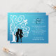 Casal em silhueta preto e branco sob árvore de corações. Colorido azul pavão brilhante, para casamentos, noivados ou festas de aniversário. Personalize o texto para atender às suas necessidades.
