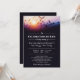 Um convite para memórias florais com uma foto de flores iluminadas ao pôr do sol com tons de azul marinho mais escuro, magenta e amarelo ouro.
