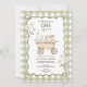 Celebrate your little one's big day with this silly goose first birthday invitation, featuring a sweet trio of whimsical geese surrounded by soft white florals, a birthday hat, and pastel gift boxes. The muted green striped background adds a fresh, minimalist touch while keeping things playfully rustic. Ideal for cottagecore, coquette, or storybook-themed baby girl birthdays. Personalize the editable text to match your party details.