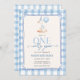 Celebrate your little one’s first birthday with this Silly Goose Blue Gingham Invitation!