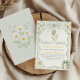 This charming sage green baby shower invite features a vintage-inspired goose wearing a bonnet, delicate daisy florals, soft stripes, and an elegant bow detail. The playful phrase “A Silly Goose is Almost on the Loose” makes it perfect for a gender neutral baby shower celebration.
