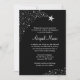 Um convite de Bat Mitzvah. Apresentando estrelas falso de tiro prateado em um fundo preto. As designs são ilustrações/gráficos impressos - NÃO FOIL DE PRATA REAL.