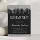 Convite de aniversário de qualquer idade (13, 16º, 18º, 21ruas, 30, 40º, 50º, 60º), com gota de prata e brilho preto Este é o convite perfeito (treze, dezesseis, dezoito, vinte um, trinta, quarenta, cinquenta ou sessenta) para diversão e aniversário da Trendy para uma Festa de aniversário Juvenil Moderna Elegante. Entre em contato com o designer para encontrar itens personalizados correspondentes.