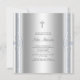 Elegante convite para belezinhos azuis, cruzes prateadas, belezando.Esta cinza prateada e o convite para batizar azul são facilmente personalizados para o seu evento, simplesmente escolhendo o botão "Personalizar!" para começar a adicionar detalhes do seu evento, estilo da fonte, tamanho da fonte e cor e texto. Observe que todos os adesivos, cartões e designs de convite que você encontrará no Zazzle são gráficos impressos sem joias reais, arcos, levantados, gravados, ou peças ou peças adicionadas.