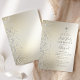 A borda esquerda deste elegante e moderno convite da primeira comunhão apresenta uma borda brilhante de diamante falso prateado. Uma cruz de folha prateada falsa aparece acima do texto personalizável, que combina escrita manual, chapa e fontes itálicas em cinzas sobre um fundo ombre dourado misturador. O verso apresenta um design correspondente.