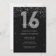 Este maravilhoso 16º convite apresenta discos cintilantes prateados em fundo preto. Para personalização mais avançada deste design, por exemplo, alteração do layout, da fonte ou do tamanho do texto, clique no botão "PERSONALIZAR" acima. Por favor, entre em contato comigo para qualquer pergunta!