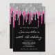 Convites Silver e Deep Pink Glitter Drives Negros Aniversár