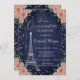 Torre Elegante prateada Eiffel, flores e moldura de ouros em um fundo azul marinho.