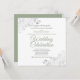 Este belo convite para o casamento apresenta um simples, mas elegante design de verde sábio e texto de cinza sobre um fundo branco com fritas florais de folha de prata ou filigrana nos cantos. Bem-vindos seus convidados para compartilhar seu dia especial de celebração de casamento com esses convites lindos.