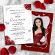 Convites Silver Floral Elegante e Foto Red Quinceanera