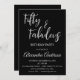 Silver Faux Foil 50 e Fabuloso Convite. O elegante Convite de aniversário Foil e Black 50th é perfeito para uma moderna Festa de aniversário Fabulosa 50th.