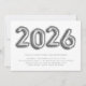 Diversão e festiva do convite de festas de Ano Novo apresentando falsos balões de folha de alumínio prateado e padrões de listras com padrão de fogo de artifício para o dorso.